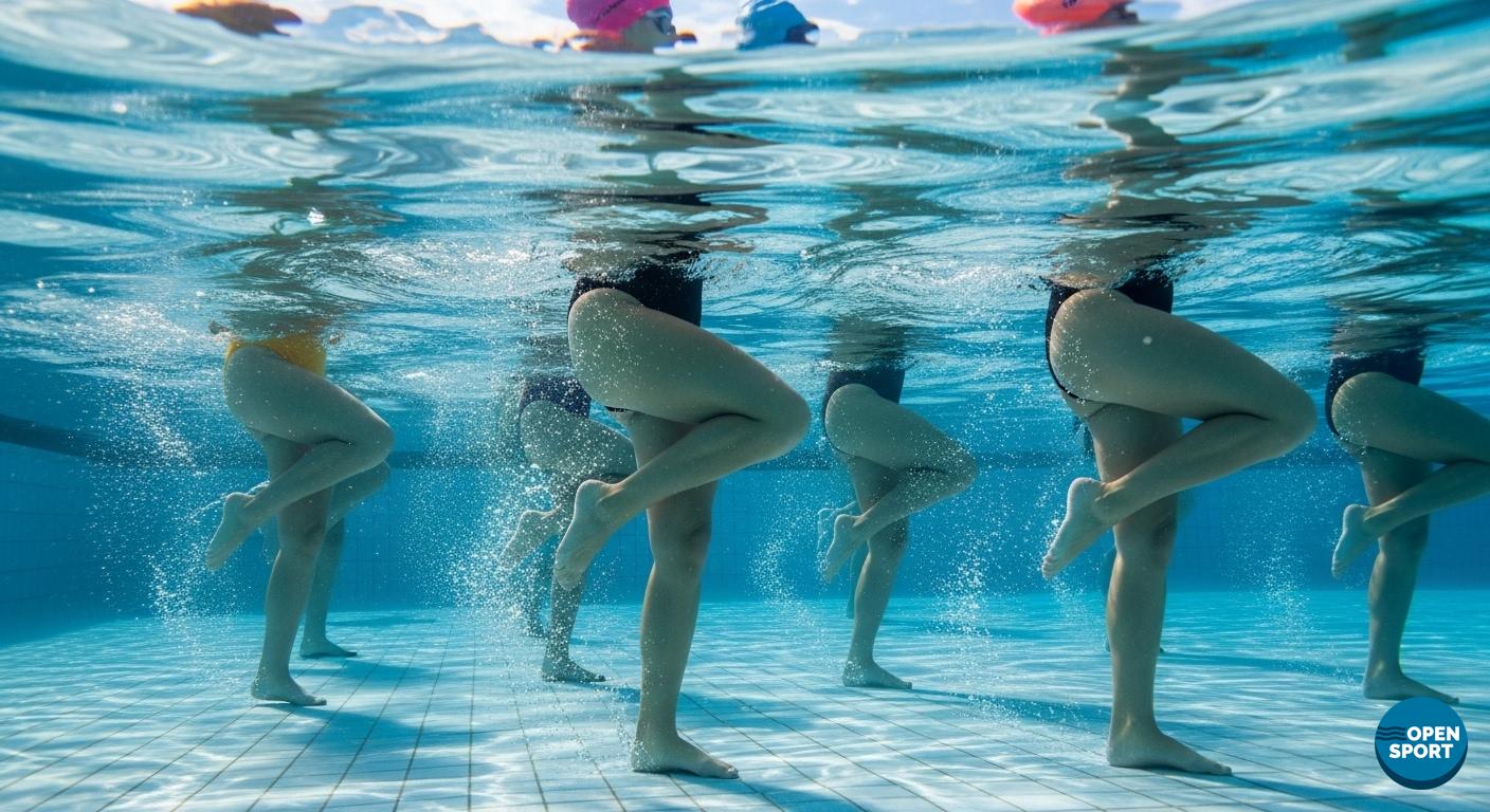 La musica diventa lo strumento essenziale di questa lezione. Si svolge preferibilmente in acqua bassa o alta in quanto l’acqua media ne limita in parte gli aspetti coreografici, rendendo più difficoltoso il mantenimento della postura e dell’equilibrio.
